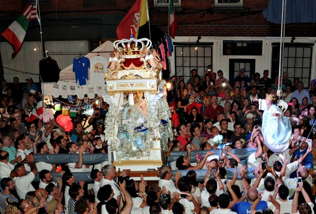 The annual event began in Boston in 1910 and is based on a tradition that goes back to the 16th century in Sciacca Sicily. Activities begin with a procession on Thursday evening and continue with performances and special events throughout the weekend. Children's activities and the Flight of the Angel take place on Sunday. Yankee Magazine calls the Flight of the Angel "truly one of Boston’s greatest treasures" and National Geographic say’s “It’s a spectacle NOT to be missed!’" As the angel ceremony is completed, confetti rains down on the spectators.