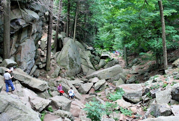 For an even more dramatic waterfall, head to the state's tallest: Bish Bash Falls. Families love to hike around the rocky formations and then set up picnics and a flat slab overlooking the spectacular falls. Parents in-the-know drive less than a mile down from the park's Massachusetts entrance to the New York entrance, since the ¾ mile hike to the falls from this lot is shorter and easier to manage with little ones.
