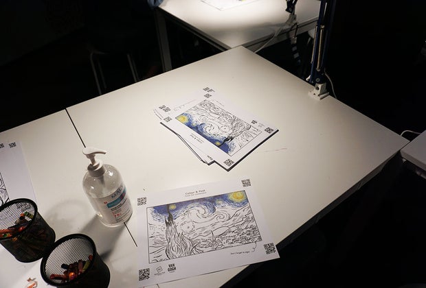Cool Kid-Friendly Perk: Let the art be your inspiration for the tables full of coloring sheets and crayons once you leave the immersive gallery. Calming task lighting and plenty of seats give you room to plop down and bring Van Gogh's pieces to light with your own hands. Once you're done, scan them to be added to the digital gallery on the wall.