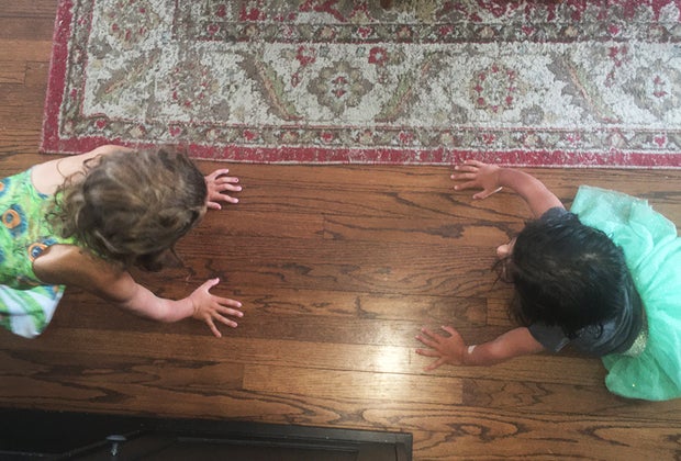 Position the kids near each for a little push-up competition. Photo by the author