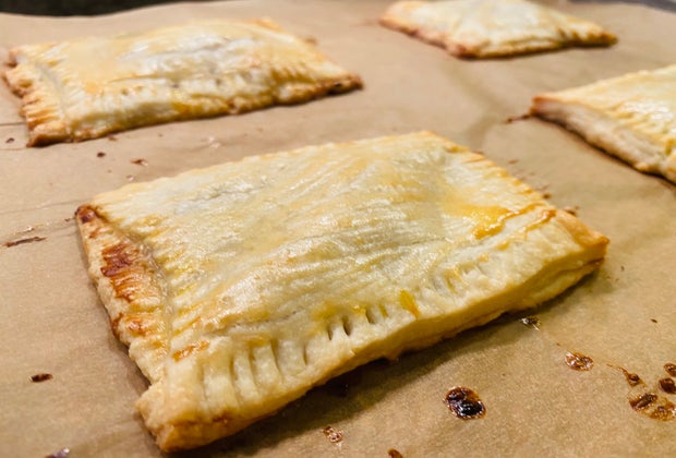 Bake for around 10 minutes in a 400-degree oven. The pop tarts should be golden brown.