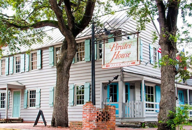 This famous pirate-themed restaurant is located in a converted house built in 1754. It serves up hearty Southern fare that's heavy on seafood, and the First Mate's Menu offers kid-friendly favorites like burgers, chicken fingers, and hot dogs served with homemade biscuits and cornbread. At the end of the meal, kids can choose a small treat from the treasure chest in the lobby.
