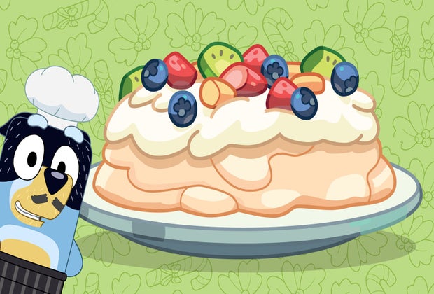 Pavlova: While Mum won’t allow Bingo to have a slice at the start of the episode by the same name (“Pavlova,” Season 3, Episode 17), the classic Australian dessert–made from fresh fruit and meringue–definitely belongs on a Bluey night menu. Superfans know that a bowl of edamame makes the perfect side dish.