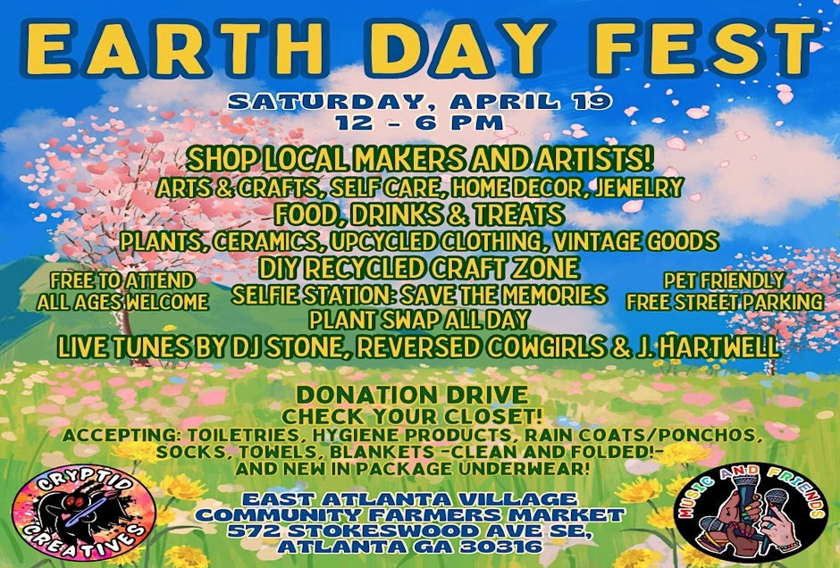 Celebrate Earth Day in the East Atlanta Village Farmers Market with local artists, live music, yoga, a recycled craft station and yummy food.