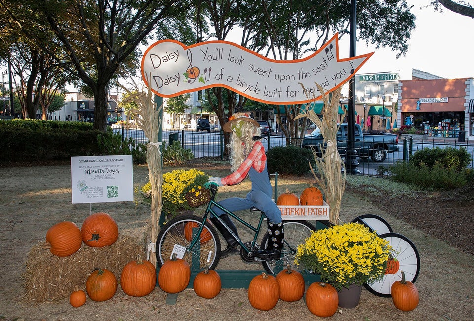 The Scarecrows in the Square competition is on display in Marietta Square during HarvestFest.