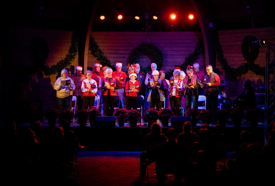 Visitors to Thrasher Park in downtown Norcross celebrate the holiday season with carol-singing choirs, The Grinch, Santa, and lighting up Norcross.