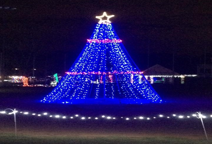 Visitors enjoy this walk-thru light show in quaint downtown Ellijay.