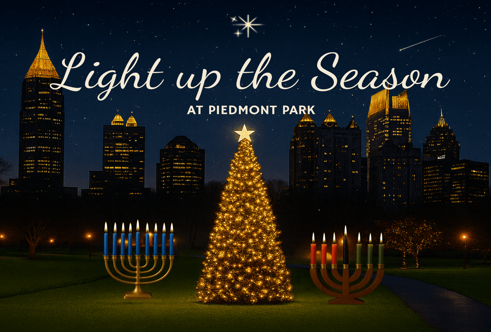 Be part of a new Atlanta tradition! The Piedmont Park Conservancy is proud to introduce a dazzling new tradition: a 50-foot holiday tree, a menorah, and a kinara that will shine bright over Atlanta.