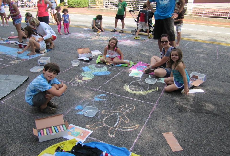 Kids who attend on Saturday can participate in the Chalk Spot and decorate a 3-foot square space. Parents pay for a square and proceeds to go the Marietta High School Visual Arts Program.