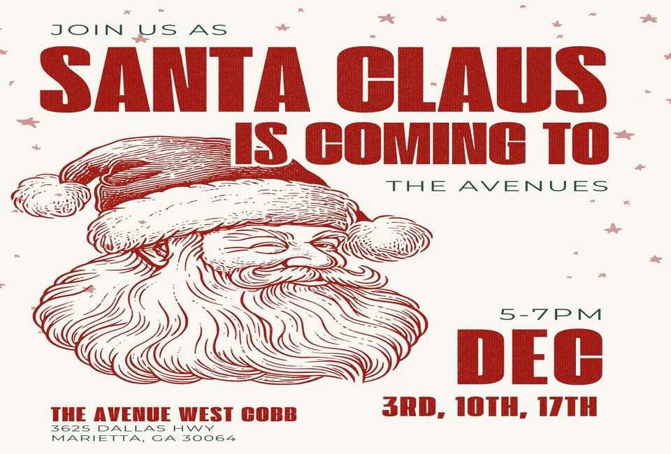 Santa is coming to The Avenue West Cobb for some holiday fun! Bring the family and take a free photo with Santa on the first three Wednesdays of December.