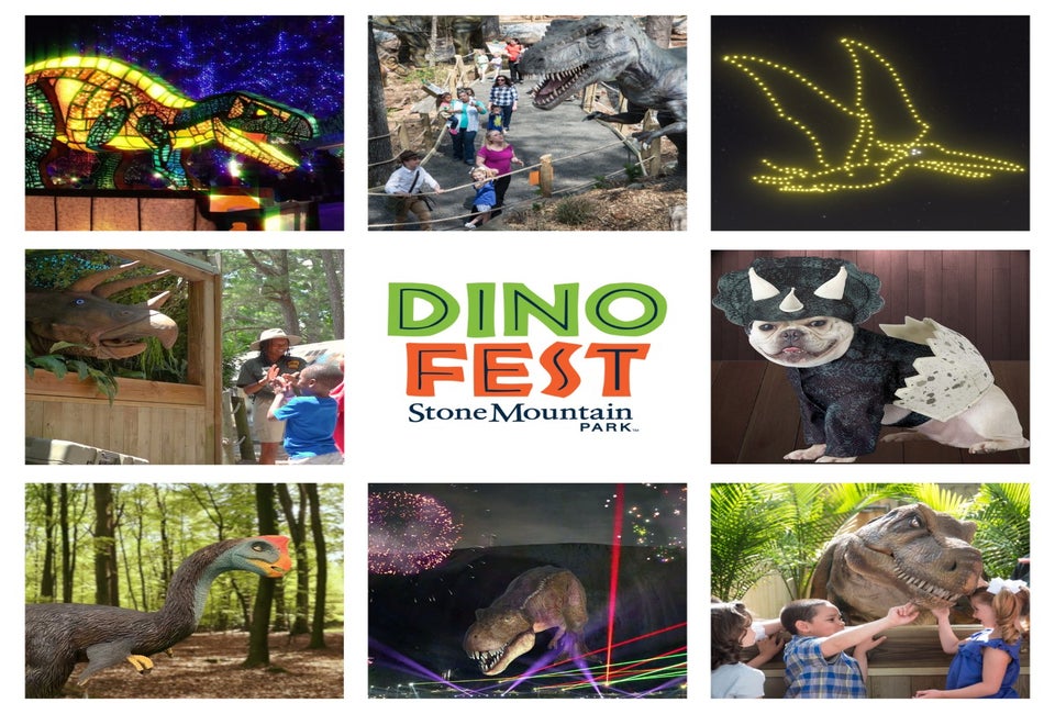 Stone Mountain Park’s Dino Fest is back! Dinosaurs roam the grounds and fly overhead. Guests see dinosaurs in 4-D, a new lighted dinosaur-themed parade, plus a special dinosaur Drone & Light Show on Saturday nights.