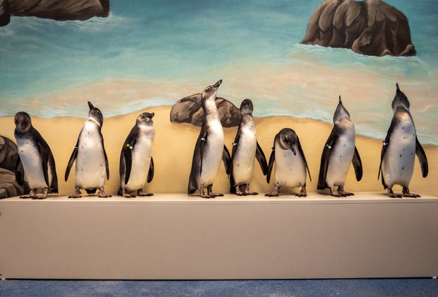 Each exhibit highlights a different marine environment. One of the newest galleries, SHARKS! Predators of the Deep, features a 20-foot-deep tank housing great hammerhead sharks, sand tiger sharks, silvertip sharks, silky sharks, zebra sharks, and round ribbontail rays. The exhibit also features a dive cage where visitors can play out their National Geographic fantasies and submerge in a tank full of sharks.