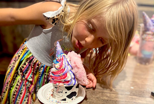 Flavors kids love: Cookie Monster, Strawberry Sorbet, Mint Chocolate Chip