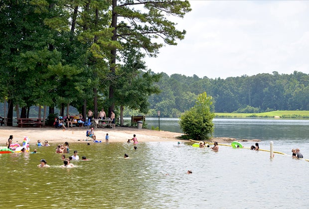 If you’re looking for a great beach spot about an hour northeast of Atlanta, Fort Yargo State Park fits the bill. A large pavilion provides a bathhouse, concessions, and non-motorized boat rentals for a day of fun on the 260-acre Marbury Creek Watershed. After swimming and a picnic, try miniature golf or the disc golf course for a nominal extra fee.
