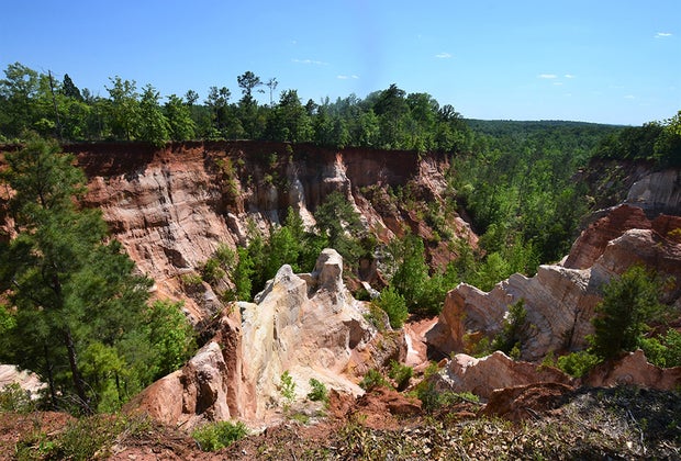 Providence Canyon is a Georgia state park south of Fort Benning, where families enjoy steep pinnacles and multi-colored sandstone cliffs. Surprisingly, “Georgia’s Little Grand Canyon” wasn’t created by a river, but by the failure of farmers to rotate crops. The result? Recesses in the earth as deep as 150 feet that led to the Soil Conservation Act of 1935.