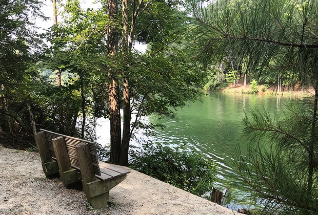 Take a break exploring Iron Hill Trail at Red Top Mountain State Park.
