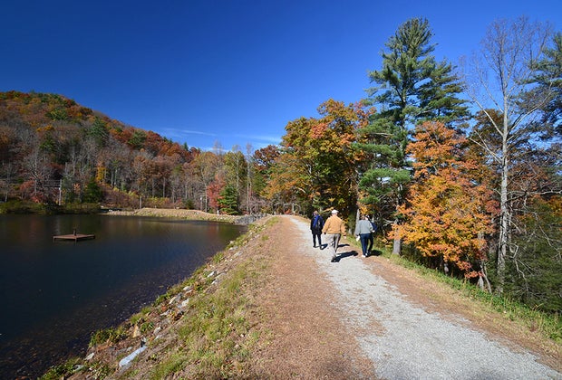 Red Top Mountain's elevations only climb about 250 feet from the base of the lake’s surface, created by damming the Etowah River, so none of the 15 miles of trails are steep. A great trail for both biking and hiking is the flat 3.9-mile Iron Hill Trail offering jaw-dropping scenic views of the lake.