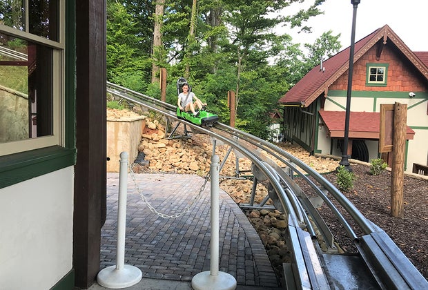 Each cart can hold up to two people, but the driver must be age 16 or older. After buckling in, the coaster slowly ascends up the side of the beautiful mountain. Enjoy the view while you can because once you get to the top, the speedy descent winds around curves, hills, and a couple of loops. Although the total ride is only a few minutes long (with half spent going uphill), you can purchase a second trip for half price.