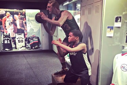 My older kid was thrilled by the station where he played virtual hoops against some of the best NBA players of all time. But the traditional basketball arcade game was also a hit (and I loved that I didn't have to keep shelling out quarters like I do at Chuck E. Cheese's). My older son also enjoyed playing sportscaster by reading off a teleprompter on camera. Posing next to life-size cutouts of greats like Larry Byrd, Stephen Curry and Muggsy Bogues was also fun—my son squealed with delight when he realized he and Bogues (the shortest player ever to play in the NBA) are the same height!