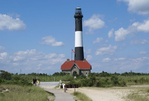 The historic Fire Island Lighthouse offers lovely views of the park.