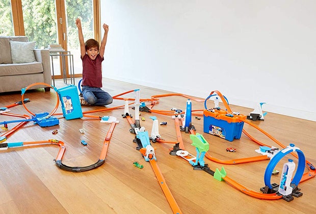 The Hot Wheels Track Builder Multi-Loop Box is a customizable track neatly packed in a storage box, which also serves as a ramp. Building new and increasingly elaborate tracks is only part of the (time-consuming) fun. Once the course is built, kids can test out all their Hot Wheels to see which car completes the track fastest. Bonus: It's only about $30.