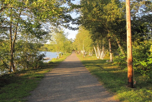 The Cotton Valley Rail Trail is a flat, easy trail for hiking or biking (and strollers). Photo courtesy of VisitWolfeboro.com