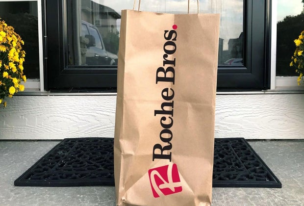 Brown bags on the doorstep are a happy sight these days, indeed. Photo courtesy of Roche Bros. Supermarkets