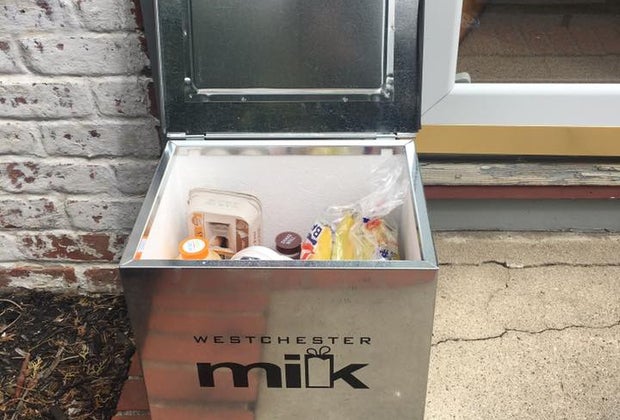 Westchester delivery personnel will stash cold items in an insulated doorstep box. Photo courtesy of Westchester Milk