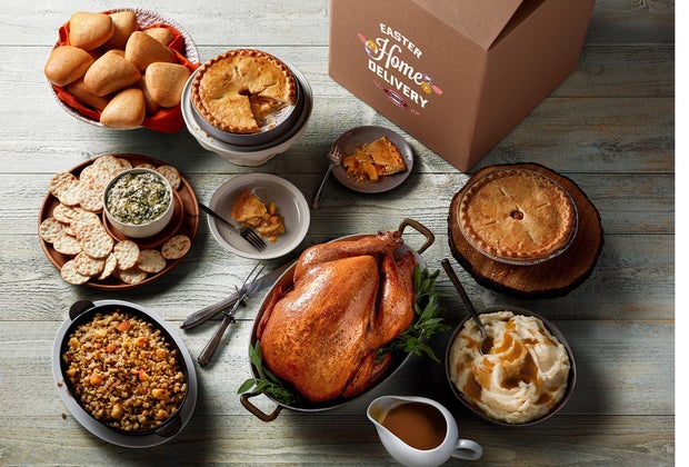This year, Boston Market is doing family-style Easter meals featuring ham or turkey (or both!) plus sides and desserts for up to 12 people. Meals are available to pre-order for pickup between April 10 and 12. Better yet, if you order by April 8, you can have your meal delivered to your door.