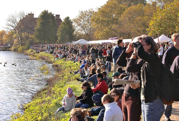 The Charles is a magnet for many Boston families, whether it's for a paddle down the river or a perfect fall day hanging out on the Esplanade. And this time of year, when the leaves are turning and the riverfront is at its most beautiful, countless families flock to the Head of the Charles Regatta, one of the world’s most competitive rowing races, when more than ten thousand rowers compete for nearly half a million spectators. Watching the rowers from the riverbank is an annual tradition for many Bostonians—but with the crowds and uncertain seating arrangements, it can be tricky to navigate with kids. After several years of attending the Head of the Charles, I have some helpful hints to keep you and your family warm and happy while you watch the race.