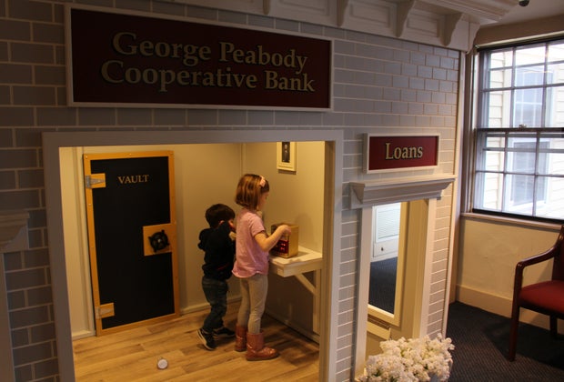 Generous City: Kids can take turns playing customer or teller at this bank playhouse. "Drive" up to the ATM window, access the vault, and count out the money.