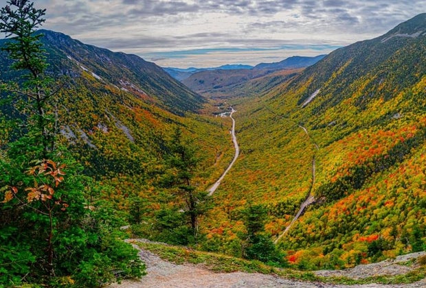 Fraconia Notch has it all—hiking, biking, even ice climbing and skiing in the winter. However, autumn is one of the best times to visit for its amazing foliage and views of the waterfalls. Each trail offers something a little different. For example, the hike to Artist's Bluff and Bald Mountain is a brisk 1.5 miles, providing beautiful views overlooking the whole park. The hike to Cannon Mountain and Lonesome Lake will take a bit longer, at 5.5 miles, but the White Mountain views at the end may be worth it.