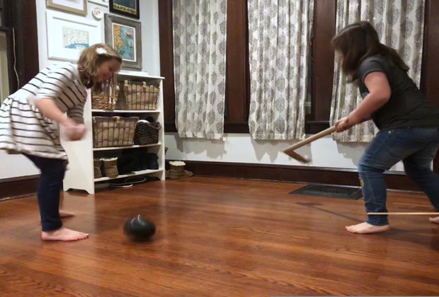 7. Who isn't intrigued by curling? Try a mini-version of the sport with this Tabletop Curling printable from CBC Parents. Or if you want to go simpler, cheaper, and way sillier, try Pom Pom Curling from Family Fun/Parents.