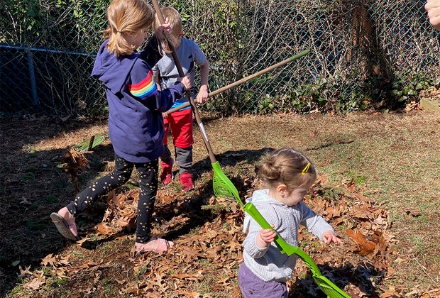 Have kids help in the yeard by raking up leaves. Photo by Rose Gordon Sala