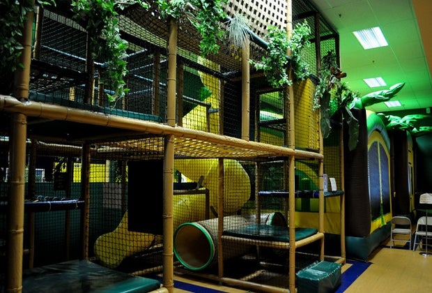 Featuring the theme of ancient ruins, the climbing wall poses three levels of difficulty and is challenging without being intimidating.
