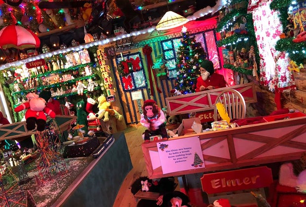 There are lighted displays, volunteer elves, and real reindeer.