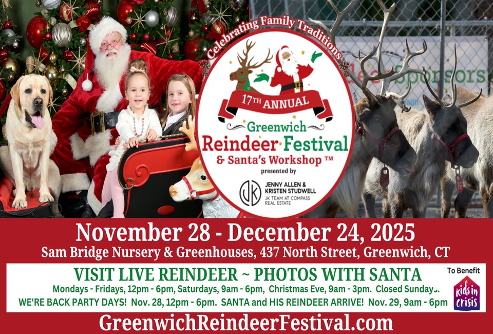 The 17th Annual Greenwich Reindeer Festival & Santa's Workshop presented by Jenny Allen & Kristen Studwell at Compass Real Estate is proud to once again support Kids in Crisis for the seventeenth consecutive year by donating a portion of every Photo with Santa to Kids in Crisis.