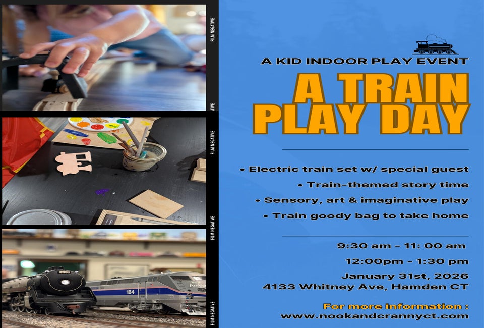 Join us for a fun-filled 1.5-hour train-themed adventure featuring: Electric Train Set with a special guest conductor, Train-Themed Story Time, Sensory, Art & Imaginative Play and aTrain Goody Bag to take home.