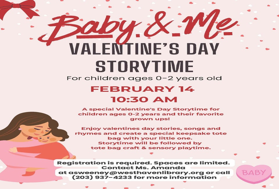 A special Valentine's Day Storytime for children and their favorite grown ups! Enjoy valentines day stories, songs and rhymes and create a special keepsake art project with your little one.