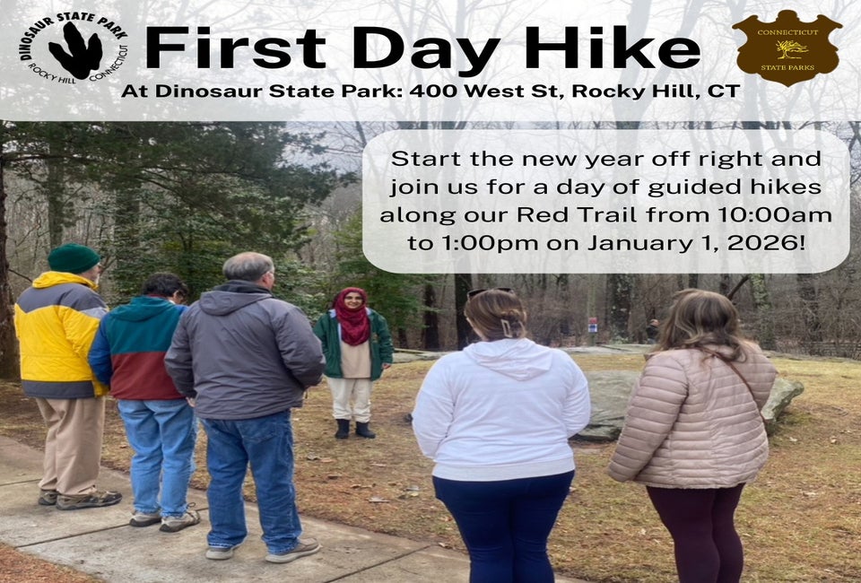 On Thursday, January 1st, the Dino State Park will have their annual “First Day Hike” event! From 10:00am to 1:00pm, there will be Interpretive Naturalists leading guided nature walks along the Red Trail at Dinosaur State Park.