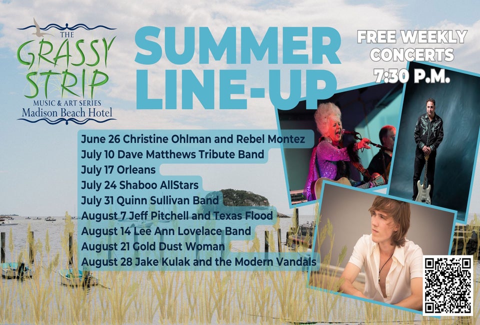The Grassy Strip Music Series at Madison Beach Hotel returns for the 2025 summer season with free, live outdoor shows beginning Thursday, June 26.