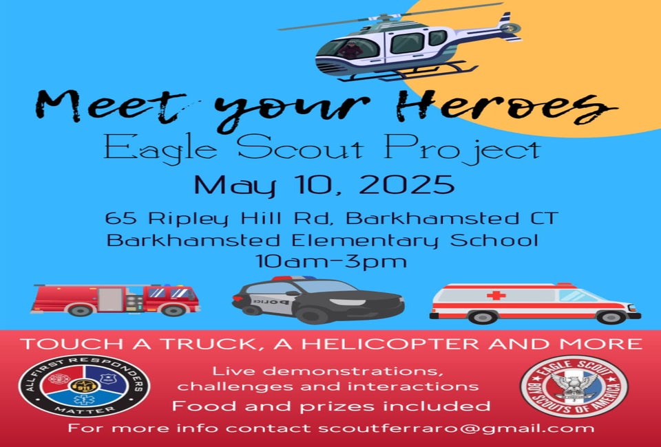Have you ever wanted to see a helicopter land? How about a high angle rescue? Are you looking to pursue a career as a first responder or in the medical field? Or have a kid who is obsessed with one of these services? Stop by the Barkhamsted Elementary school on May 10 to see live interactions and demonstrations performed by Fire and EMS Departments, Police, Litchfield County Dispatch, Life Star, Ski Patrol, as well as many other specialized units.