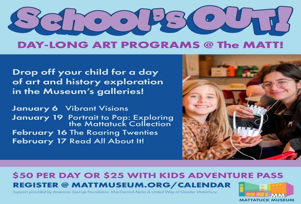 Drop off your child (ages 5+) daily for this day-long experience. Children will be immersed in the Museum’s galleries while learning about history and developing their art skills with unique materials and techniques.