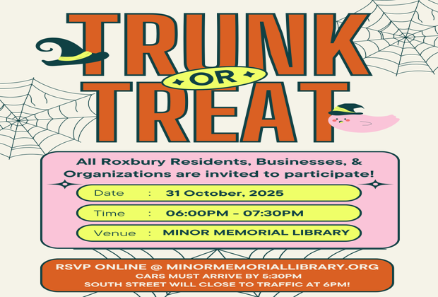 All Roxbury businesses, residents, and community organizations are invited to participate! Please RSVP to reserve a spot for your car. If you need extra space, please contact the library.