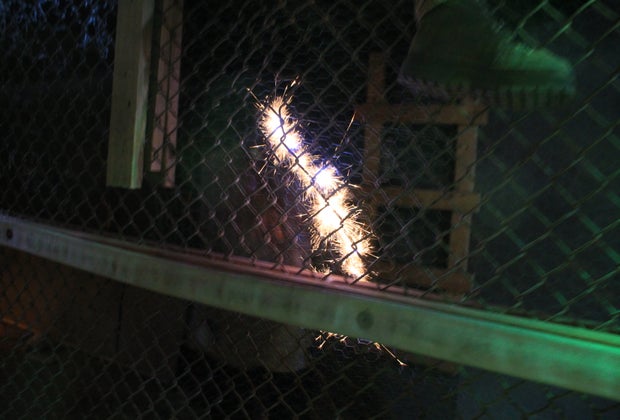 The "outside" and the cemetery take a couple of months to assemble and are offered to the public by the Shaker Pines Fire Department of Enfield. The Department has built and run the strobe-lit, ghoulish maze for about five years. Hanging limbs, electrical sparks and scary apparitions all greet you as you are ushered through narrow, darkened hallways.