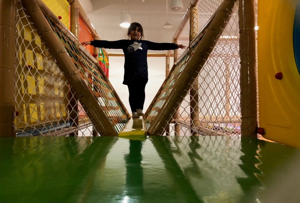 The space is broken into two main areas: Mini Club for the under 42” kids and Mega Klub for the big kids. I remember those pre-walking days well, and having a safe space for the toddling crew is definitely a bonus. The ballistics arena was not open when we were there - but it looks like a lot of fun. It features an upper level of cannons that allow little ones to engage in a little friendly ball battles. This adult-sized human was also able to run through all the obstacles without getting stuck or breaking anything.