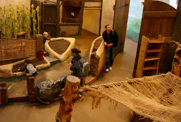 Also on the second floor, the Musical Planet room is a mini-playground decorated in an Asian theme that includes a rain-stick see-saw, a bridge with three bronze gongs, and other melodious play features. New to the second floor is the block room (Floor Play), which is a square room paneled in wood for toddlers that has a huge selection of wooden blocks and vehicles for kids to play with. The Toddler Sea Cave is a great place for crawlers and others who need a soft, protected space.