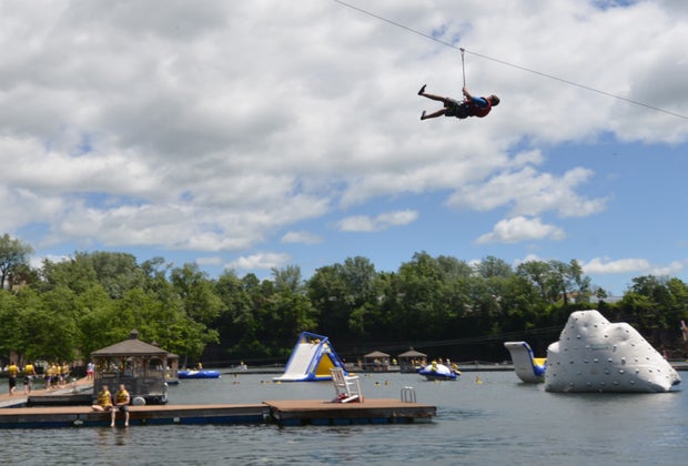 This place has everything for outdoor fun, including this thrilling twist on ziplining: Older kids can zip over and into the water! There are 14 ziplines to choose from. Enjoy many other activities, including wakeboarding, rope swings, kayaking, scuba diving, hiking, biking, and "cliff" jumping.