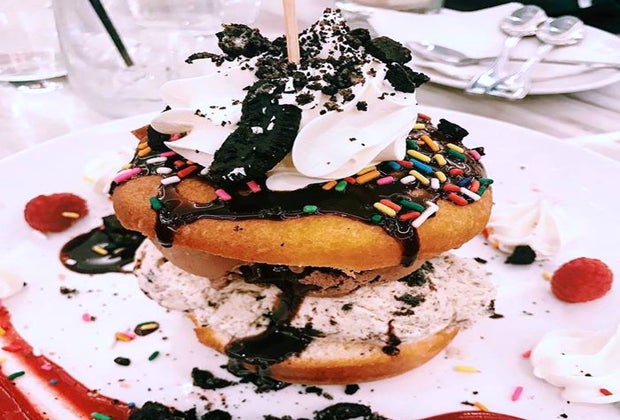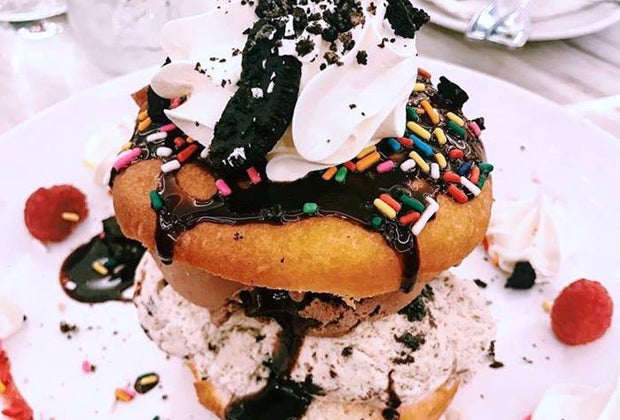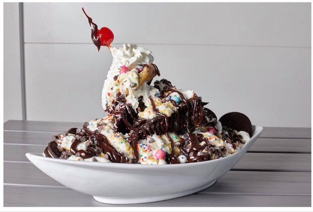 Known for concocting insane creations like a 24-scoop sundae topped with sparklers and milkshakes crowned with an entire slice of cheesecake, the Sugar Factory at Foxwoods’ is any sweet tooth’s paradise. The dessert menu occupies about half of the restaurant’s menu with an array of cakes, cheesecakes, gourmet ice cream sandwiches, and “insane milkshakes.” But let’s talk ice cream. The restaurant’s iconic ice cream sundae “King Kong” is two dozen scoops of ice cream, covered in hot fudge, caramel and strawberry sauce, showered with candies, cookies, walnuts and waffle cones with sparklers atop the behemoth creation. Not that hungry? Try the gourmet ice cream sandwiches like the Peanut Butter Cup with peanut butter cookies, chocolate cream, and chocolate chips or the Rainbow Doughnut, a doughnut with cookies n’ cream ice cream, chocolate ice cream, fudge and raspberry sauce, whipped cream, Oreo cookie crumbs, and raspberries. And really, you oughta try one of their Insane shakes. But, that’s another story.