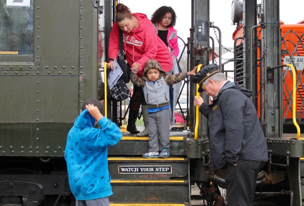 We arrived 40 minutes prior to our train leaving the station. We were able to find parking right at the event location because our tickets were later in the day. There was another parking lot 3/4 of a mile away which was running shuttles back and forth to the train station. Train rides were available for multiple times all day long and families would show their tickets and enter the staging area where they would watch Thomas pull up (wow!) and then board one of the 6-7 train cars.